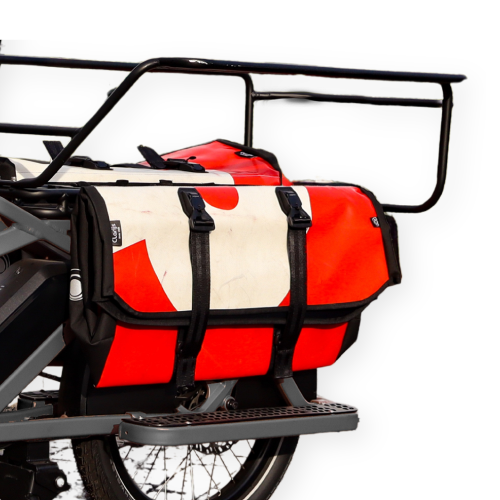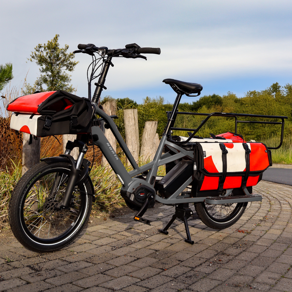 De Longtail Fietstas Universal reCYCLEd – red is ontwikkeld voor intensief dagelijks gebruik op longtail fietsen. Dankzij het universele bevestigingssysteem past deze fietstas op bijna elke longtail fiets. Geschikt voor o.a. Tern, Trek, Veloe, Carlos, Douze, Riese & Müller, Brinckers en Bike43.